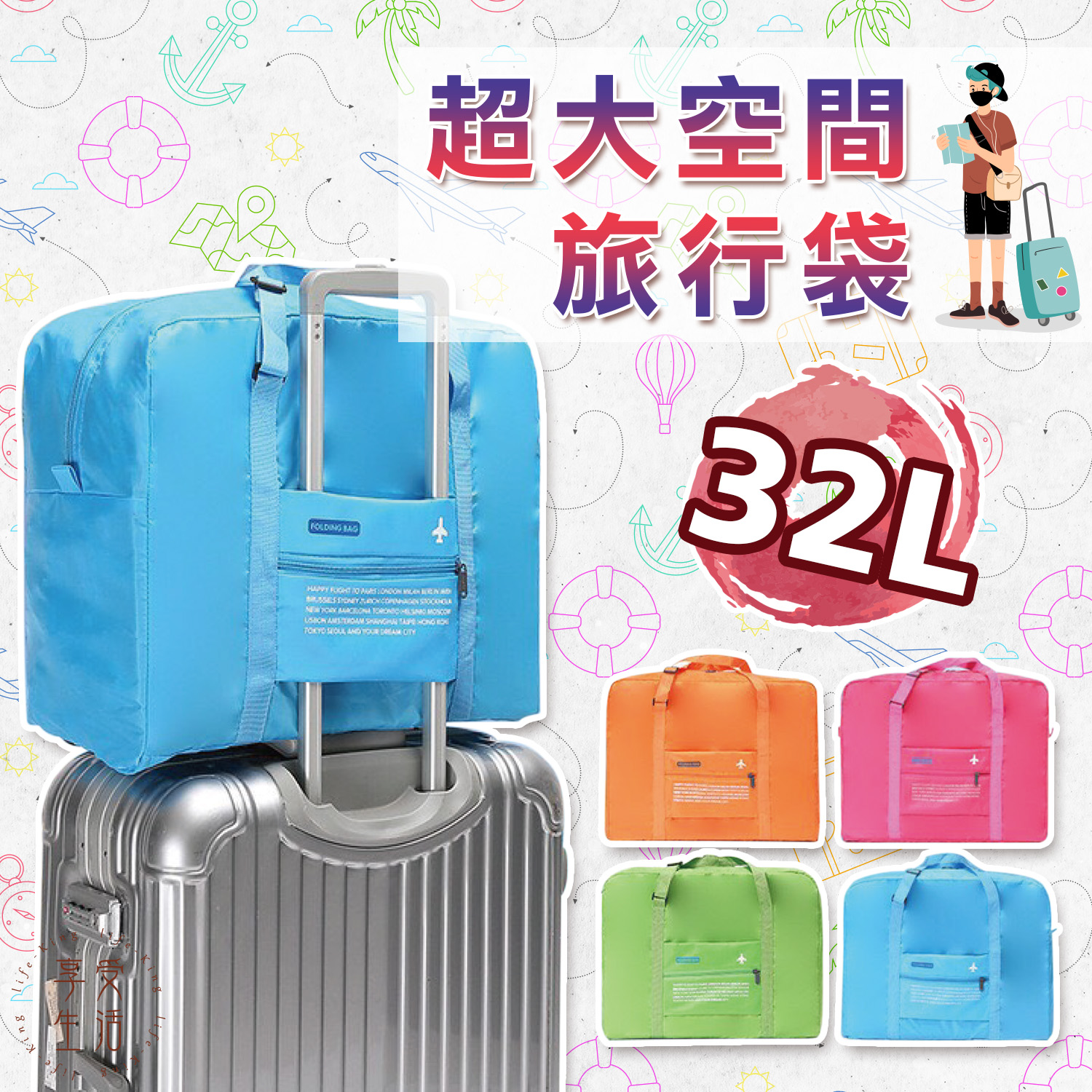編號|B-03-1顏色|橘、綠、粉、藍材質|牛津布規格|收納後20x15cm 攤開後43x33x深16.5cm