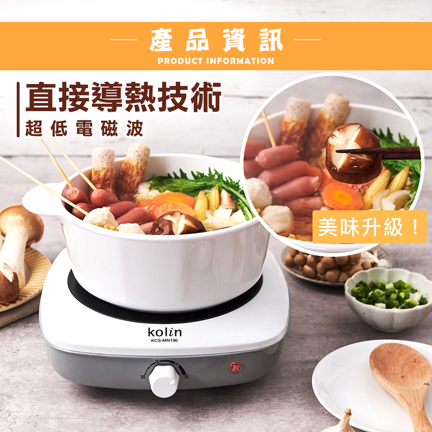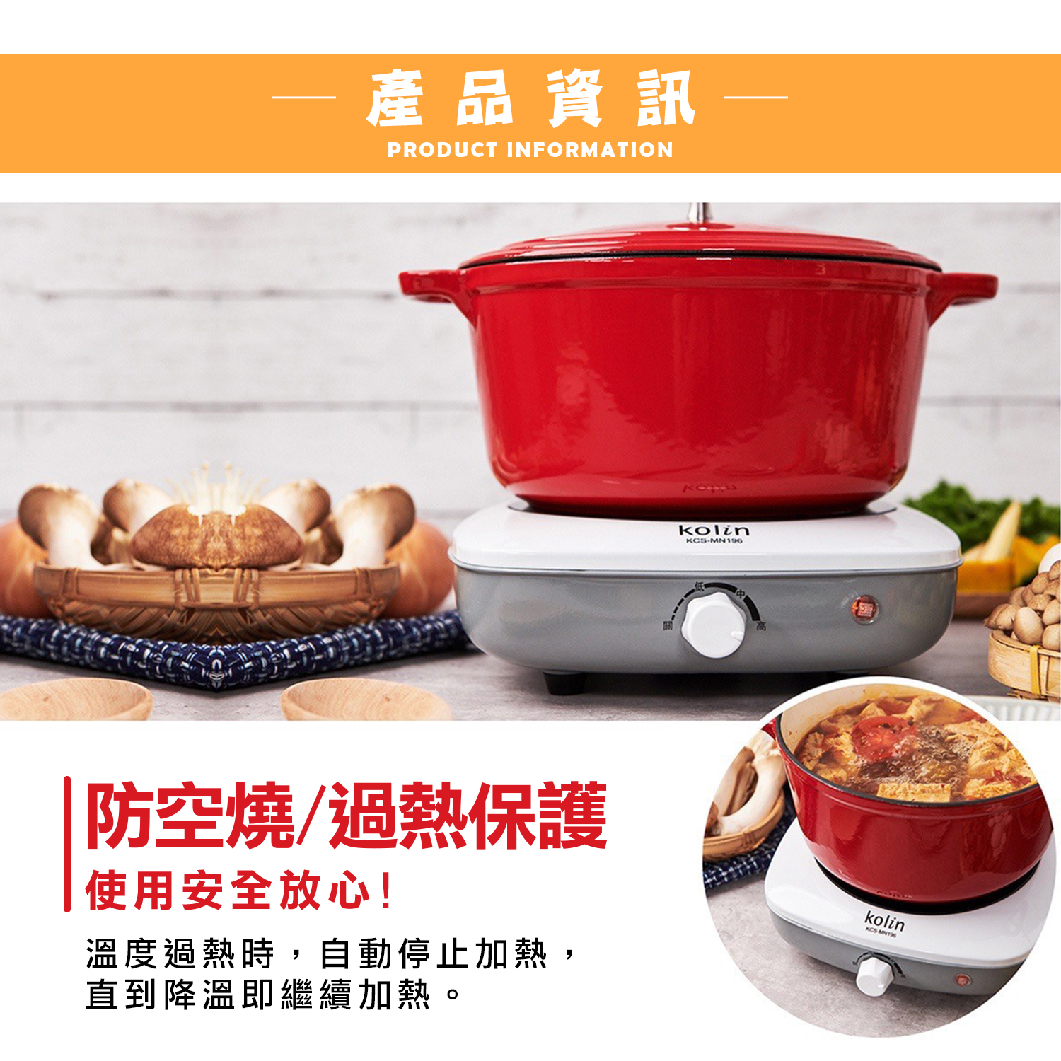 編號|KCS-MN196尺寸|(W)255x(D)275x(H)85mm淨重|1.4kg毛重|1.6kg材質|爐面─黑晶玻璃爐面直徑|19.6cm額定電壓|AC 110V額定頻率|60Hz總額定消耗電功率|1000WBSMI|R37865
