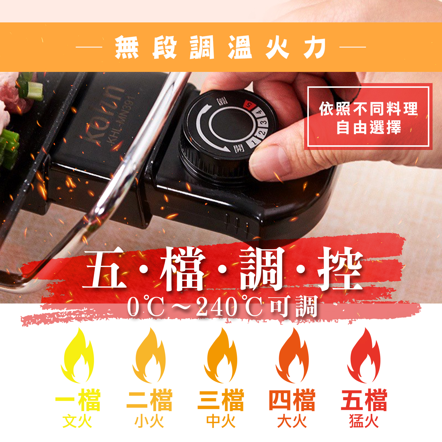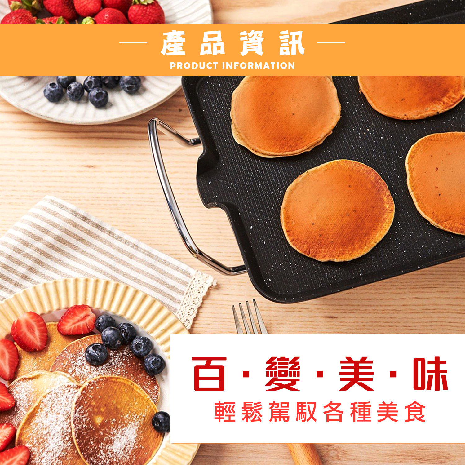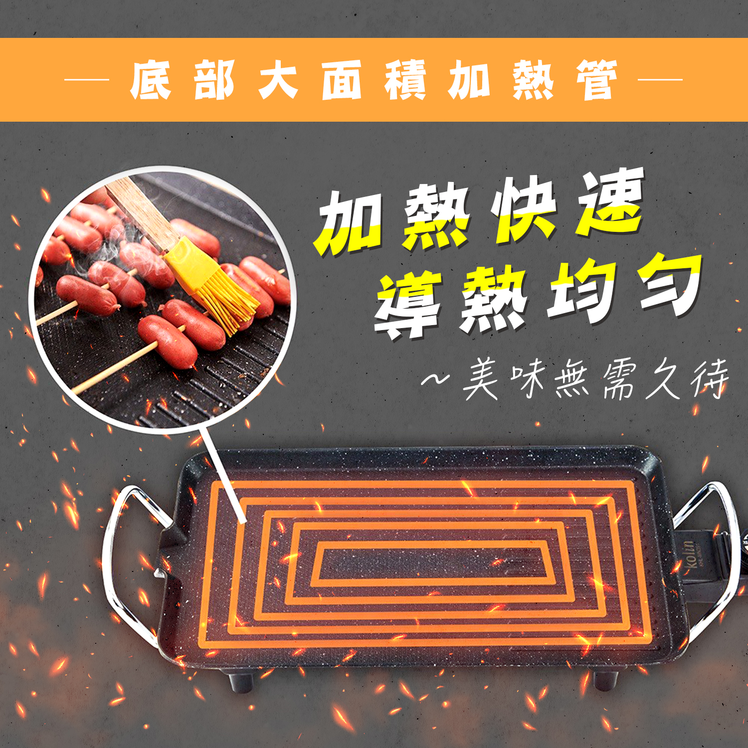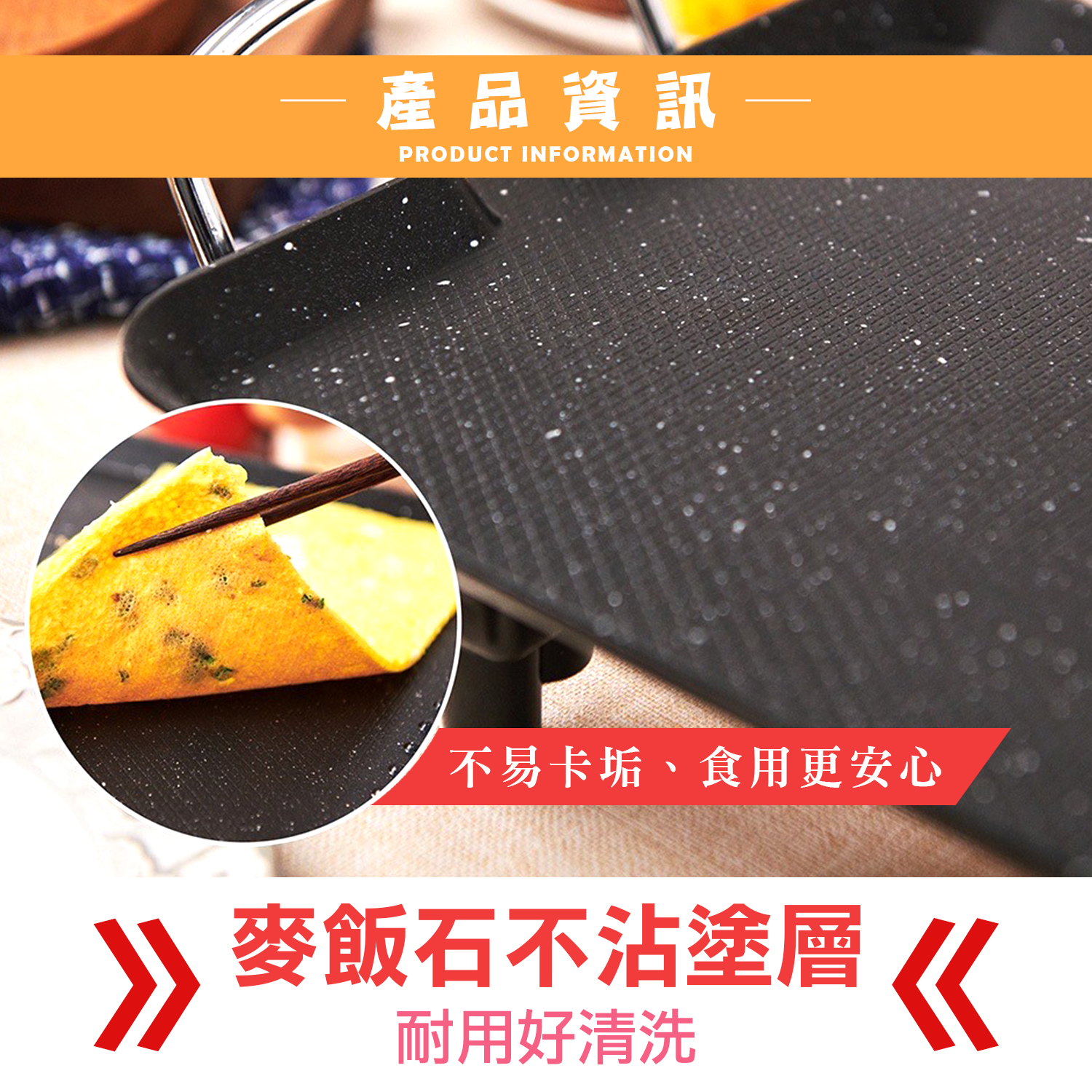 【商品特性】 1.39公分寬大面積,立體紋路烤盤。 2.無段調溫火力,最高240度,依照不同料理自由選擇。 3.麥飯石不沾塗層,耐用好清洗。 4.瀝油孔設計,可排出多餘油脂,健康少油煙。 5.分離式溫度控制電源線,使用安全,收納方便。 6.底部大面積加熱管,加熱快速,傳導均勻。 7.薄型機身設計,不佔空間好收納。 8.防乾燒過熱斷電保護裝置。