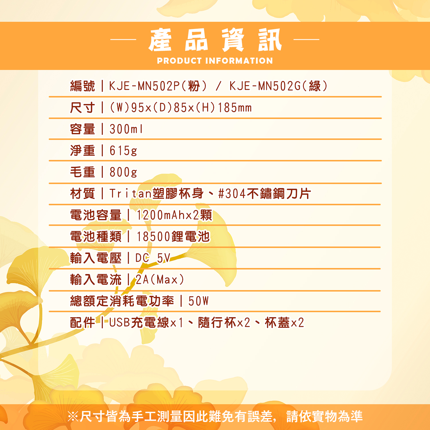 型號:KJE-MN502P(粉) / KJE-MN502G(綠)