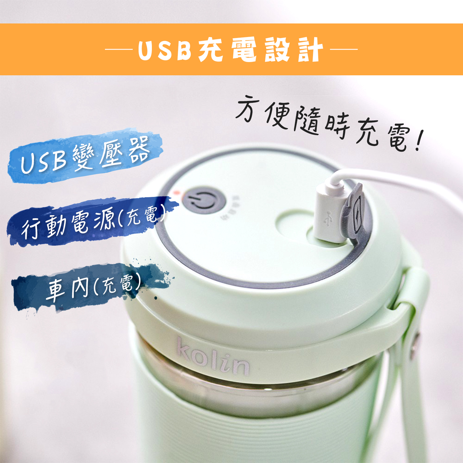 1. USB充電設計,可隨身攜帶。