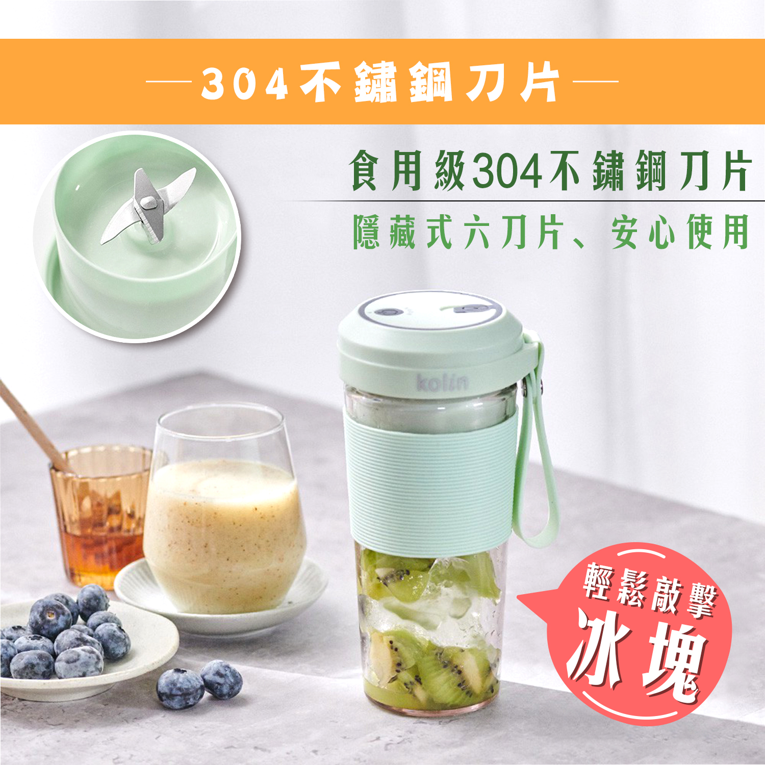 4. #304不銹鋼六刀片,堅硬耐用。
