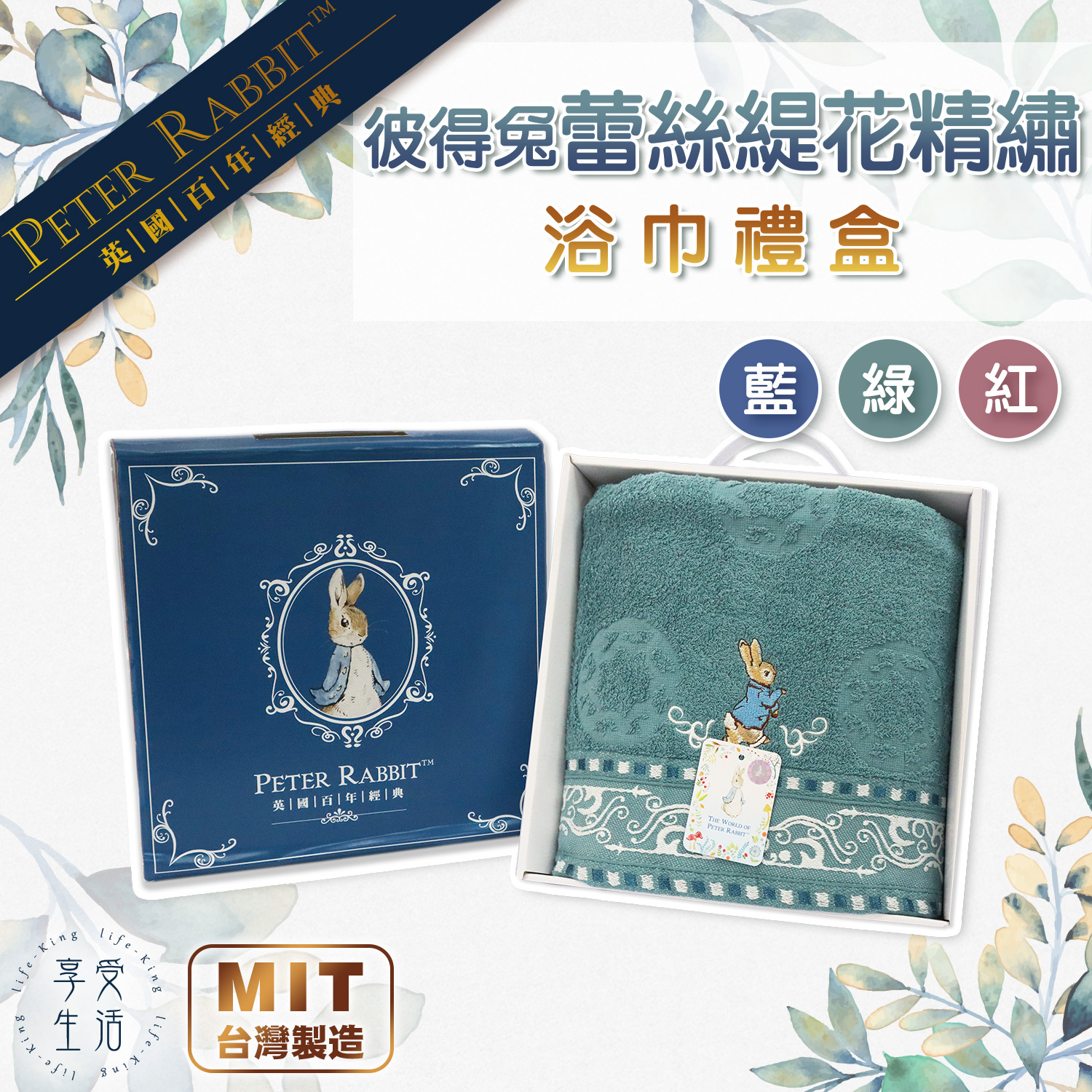 【彼得兔】蕾絲緹花精繡─1浴巾1毛巾1方巾禮盒
