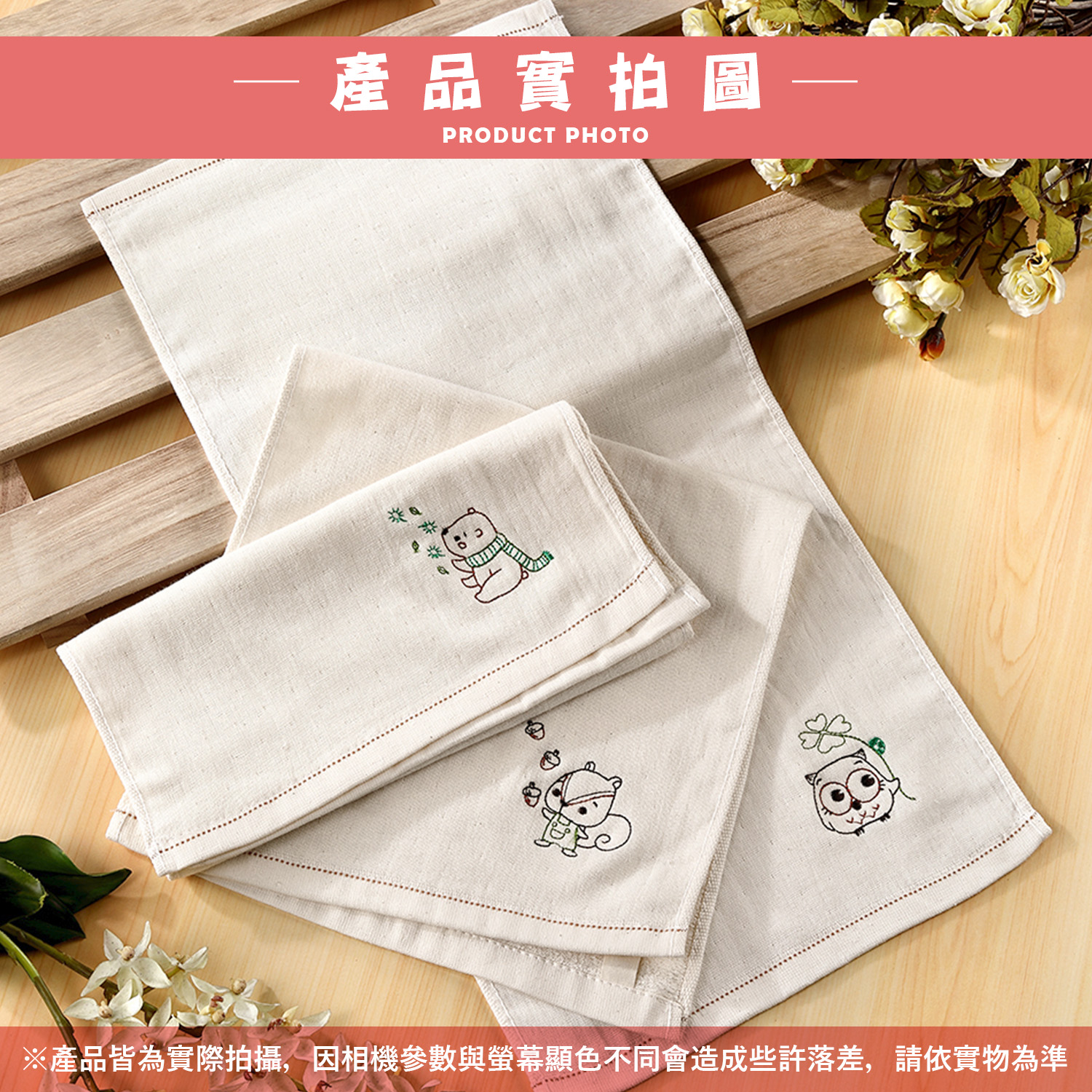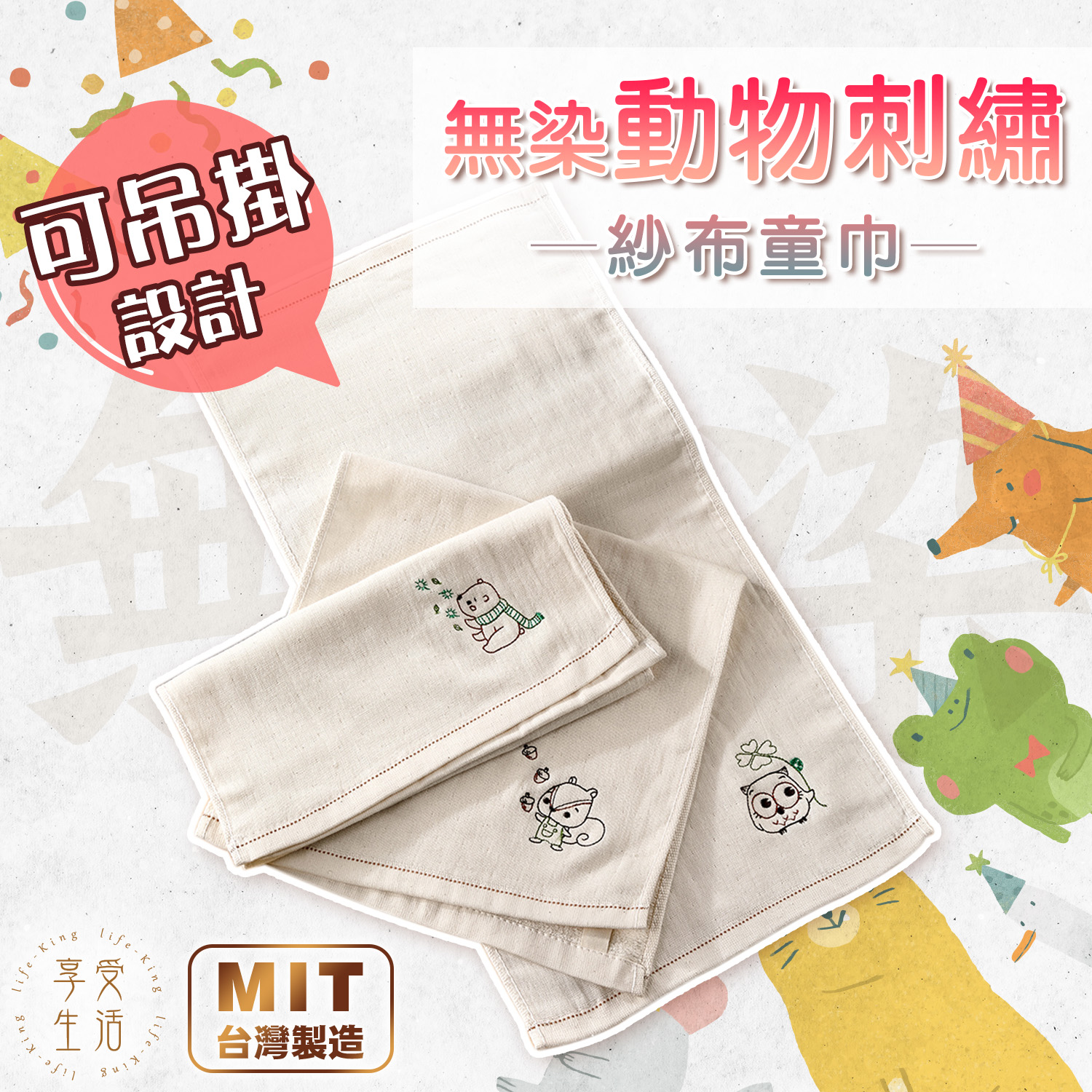 【童巾X方巾】動物印花雙層紗布方巾