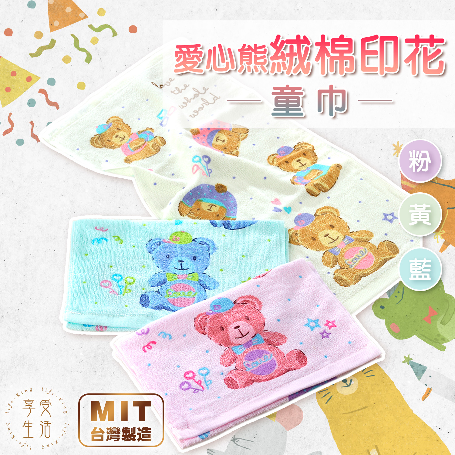 【無染X有機棉】動物派對無染─小浴巾禮盒